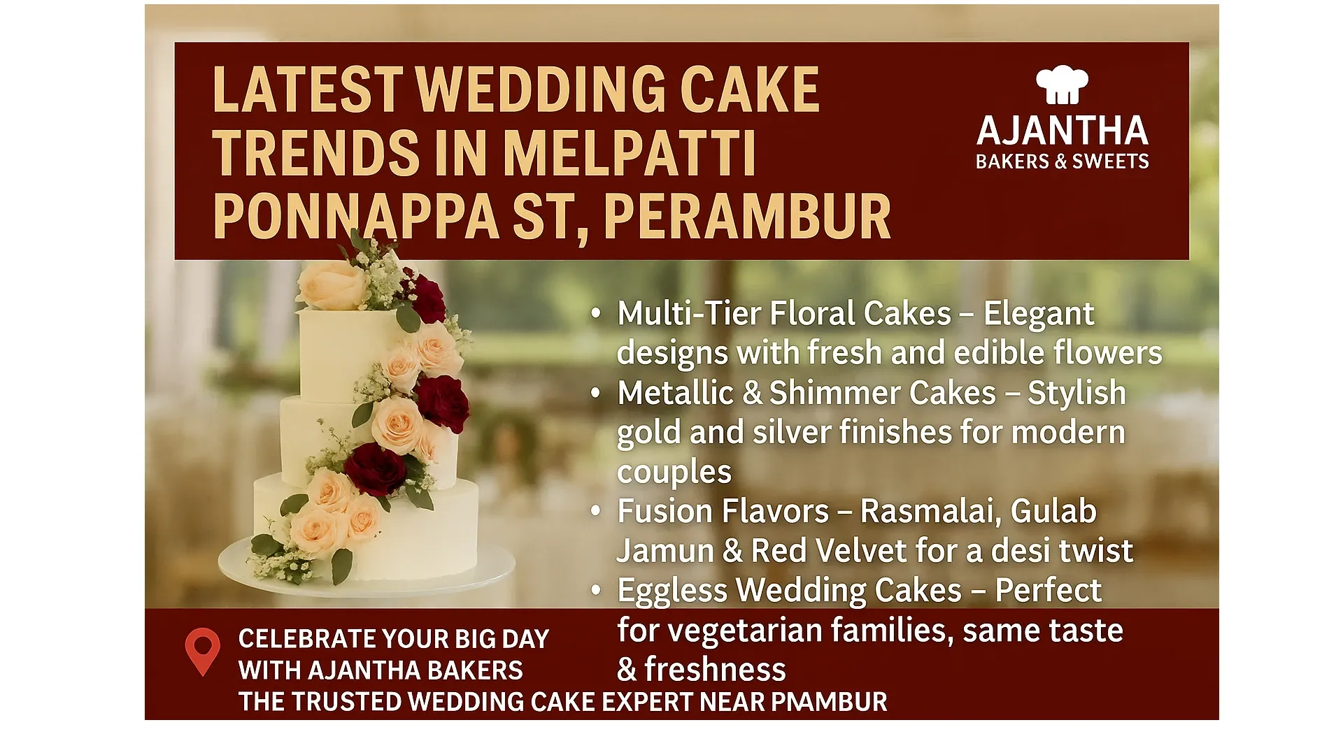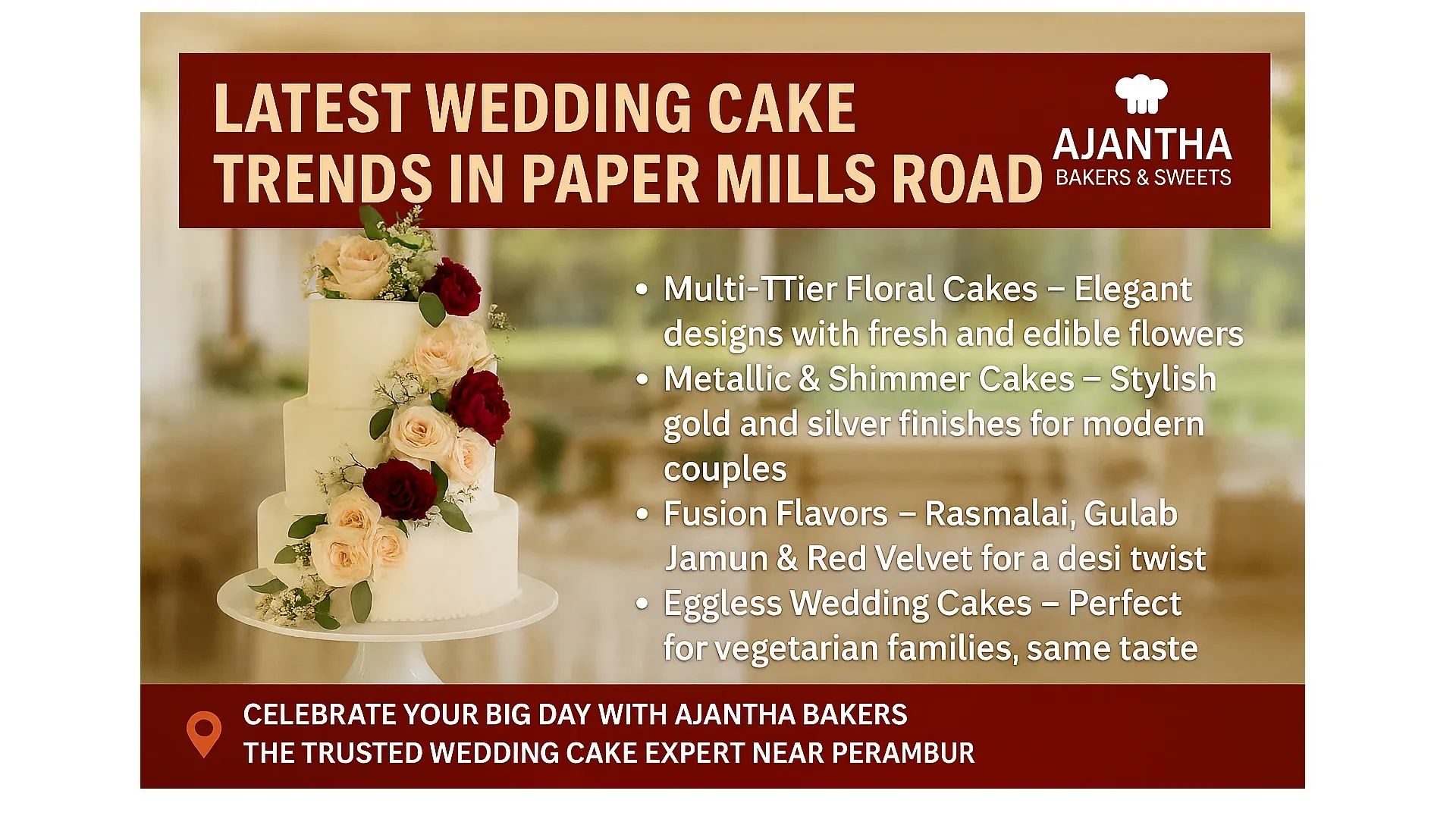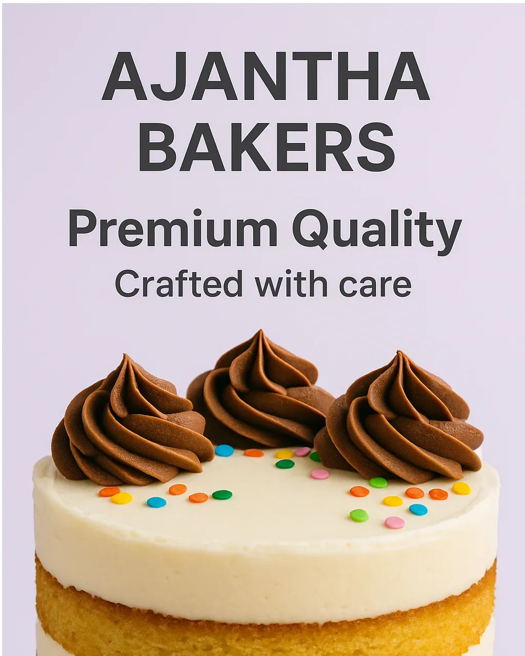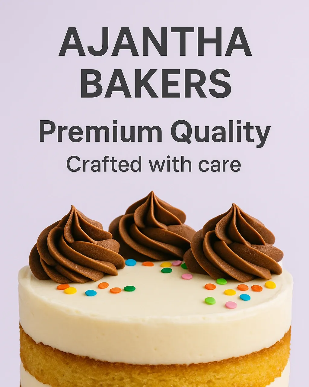 Ajantha Bakers & Sweets is a trusted bakery near Paper Mills Road, Chennai, known for birthday cakes, wedding cakes, eggless cakes, pastries, sweets, and fresh snacks. Conveniently located near Paper Mills Road, Chennai, we are the one-stop destination for every celebration.